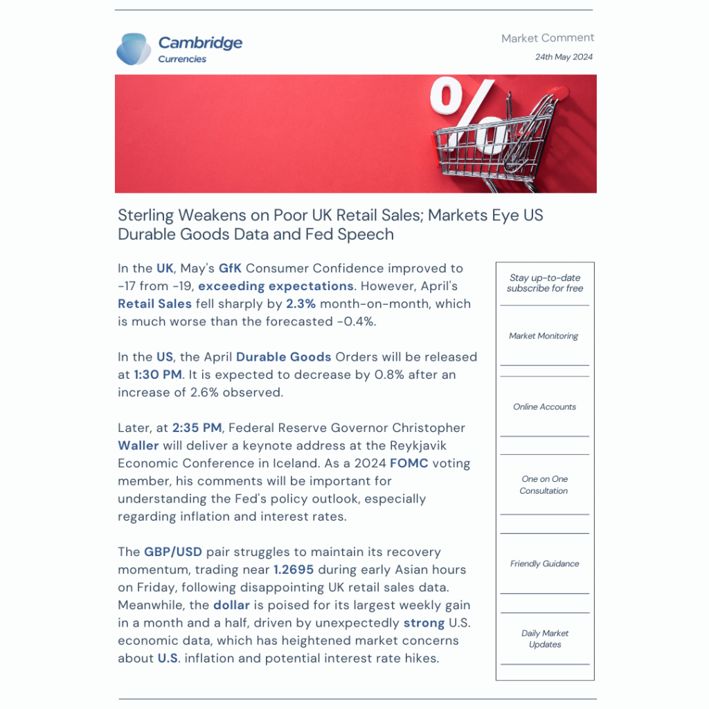 Sterling Weakens on Poor UK Retail Sales; Markets Eye US